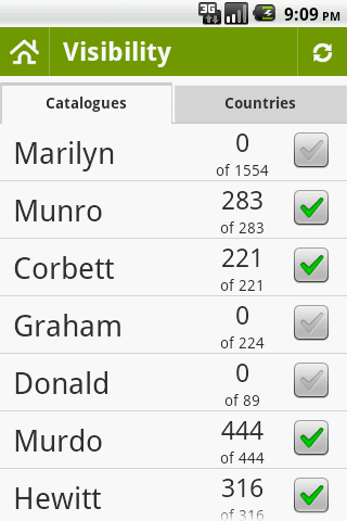 ✓ contains all the mountain peaks from the following catalogues : Marilyns, Munros, Corbetts, Grahams, Donalds, Murdos, Hewitts, Nuttalls, Wainwrights, Deweys and Birketts
