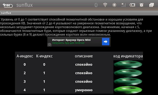 This program shows a condition of solar activity and a geomagnetic situation, geomagnetic storms, based on data of geomagnetic indexes. The program displays the last photos of the sun (according to NASA) in 4 ranges. By pressing the reduced image in the screen center, the detailed photo opens.