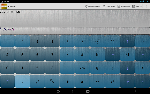 Besides standard functions (sin, cos, tan, log, ln usw.) of a calculator, it offers the possibility to clearly arrange your calculations in a spreadsheet.
