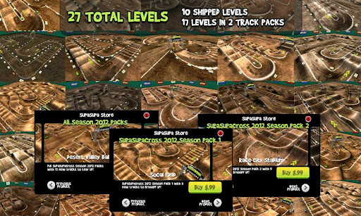 Buy the SupaSupaCross 2012 Pack 1 and SupaSupaCross 2012 Pack 2 with 17 new beautifully crafted and challenging tracks. That would bring the total tracks to 27!