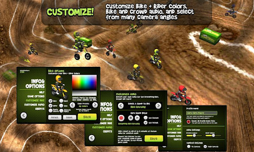 New features to add your own bike/rider style and sounds to the game as well as pick from many camera angles.