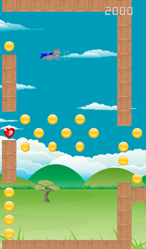 Super Flying Kitty is the coolest cat, avoiding bricks and boxes and collecting coins and hearts.