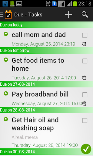 ★ Tap on Green color right mark icon provided on right side of all screen to clear the completed tasks.