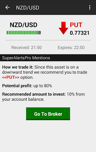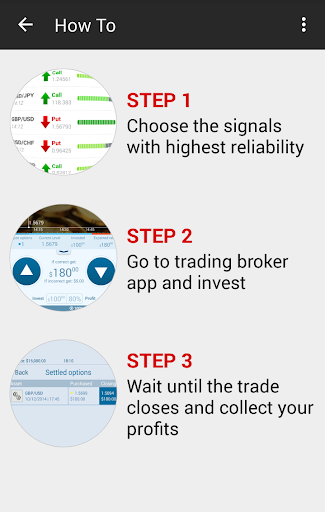 Our app uses an advanced built in strategy and gives you easy to follow Binary Options Signals.