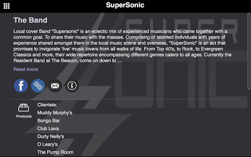 Keep up to date with "SuperSonic" shows/events/venues/gigs in real time and get information on the band from videos, photos and more!!