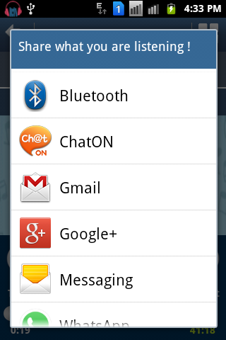 + Share tracks that you are listening, with your friends on social networking sites & apps
