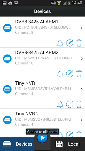 Play back stored recordings from your DVR or NVR on your handset or tablet (requires high upload speed internet)