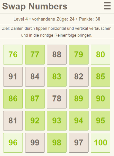 Numbers, numbers, numbers everywhere. But something is wrong. 1, 2, 5, 4, 3 … After the 2 there is a 3 instead of 5! What to do now? Correct, you tap with your finger on the 4 to swap the 5 and the 3. The order of the numbers is correct now, which is nice.