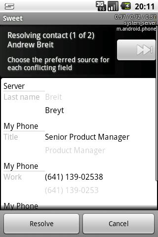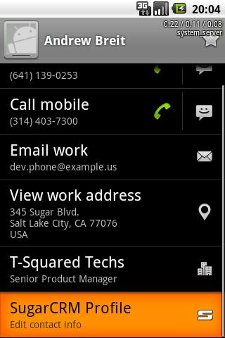 Sweet is an Android application that can sync your SugarCRM contacts with your Android mobile phone. As of now, it will perform a two way sync the following fields: