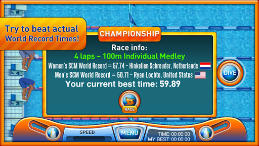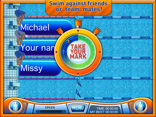 This game was designed by swimmers to be as accurate and fun as possible. All styles of swimming are represented.