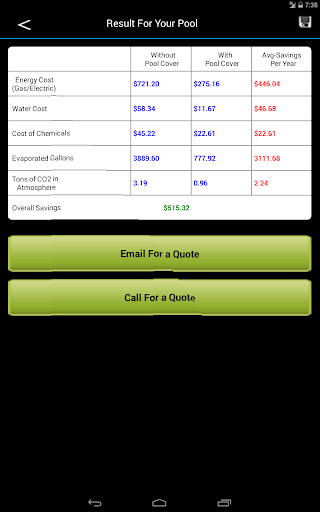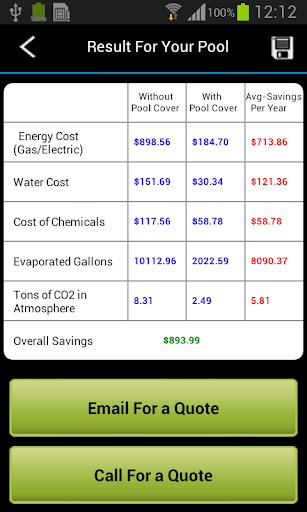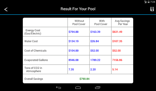 - Average cost of Water from replacing the evaporated pool water from your pool per year, and the potential savings you could achieve.
