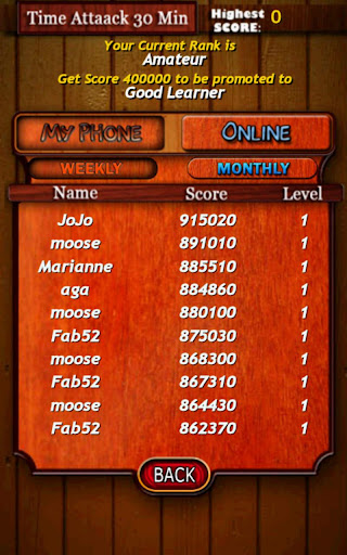 - All game modes have individual player ranking system based on the highest level/Score achieved.