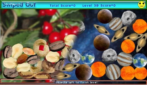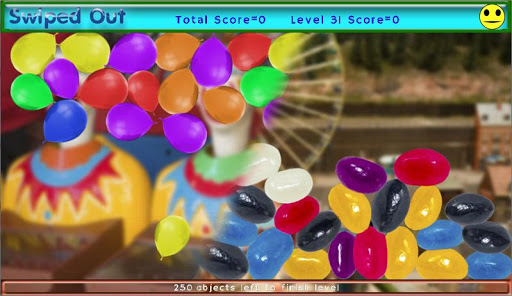 As the screen fills with abundant goodies, you have to swipe 3 or more of the same object to remove them. We've got jelly beans, nuts, fruit, balloons, vegetables, planets and more.