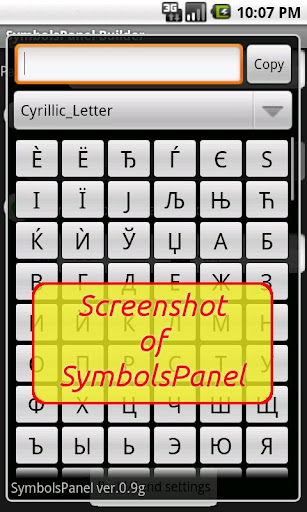 The app "SymbolsPanel" can accept symbols settings from other app. SymbolsPanel Builder generates settings for new symbols, and sends to SymbolsPanel.