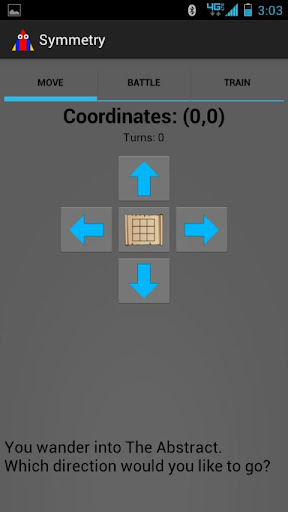 This is a simple text-based game involving a lot of strategy and a little luck. You start as a low leveled character fighting blobs. Your goal is to beat each level in the least moves possible and unlock the higher levels and characters.