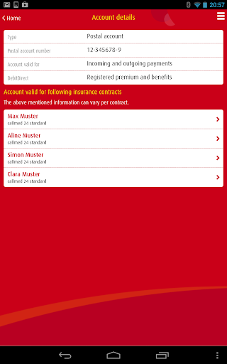 View of stored account numbers for payments or premiums loads.