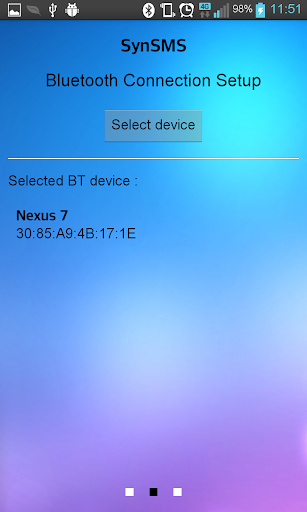 SynSMS is a simple sms app with a special feature which is synchronizing sms database with other devices via bluethooth.