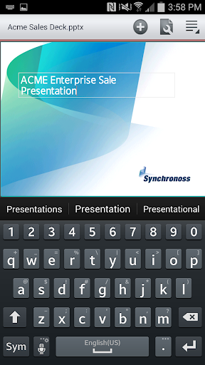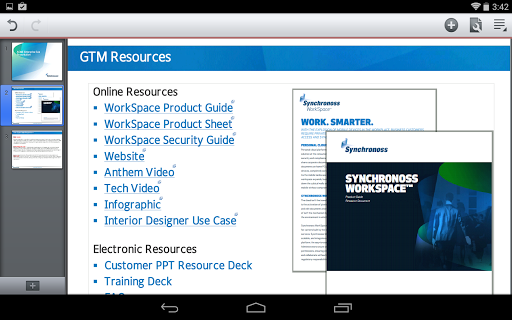 Synchronoss WorkSpace™ is a secure, flexible, and scalable white-labeled cloud solution for communication service providers. Synchronoss WorkSpace™ empowers office professionals with the tools and applications to be productive, no matter where business takes them. The cloud solution makes it easy to securely sync, share, collaborate, create, edit, and access business-critical files, allowing individuals, workgroups and departments to get more done in more places.