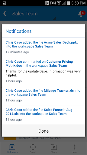 * Centralized content collaboration allows employees to comment on folders and files and get work done efficiently and effectively