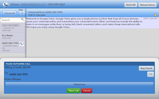 SynerGV is an application that connects your Android phone or tablet to your Google Voice™ account, presenting a tablet-optimized and phone-capable interface to SMS and the most common Google Voice™ functions for calling and account management.