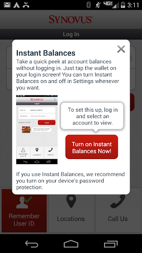 • Turn on ‘Remember User ID’ to use Instant Balances