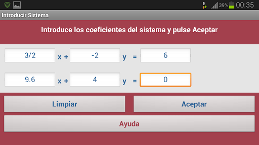 Los coeficientes del sistema pueden ser números enteros, fracciones y números decimales, por ejemplo: 3, -5, 2/7, 8.23, etc.