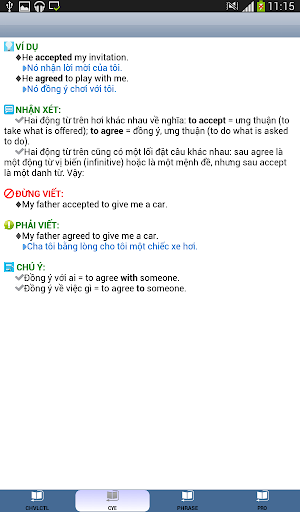 Ứng dụng gồm 3 từ điển Anh-Việt, Việt-Anh, Việt-Việt; So sánh cách dùng các từ thông dụng; Lưu và Tìm kiếm cụm từ; Cách phát âm Tiếng Anh.