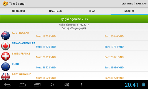 - Xem tỷ giá các loại ngoại tệ như đô la Mỹ, Úc, euro, bảng Anh, yên Nhật