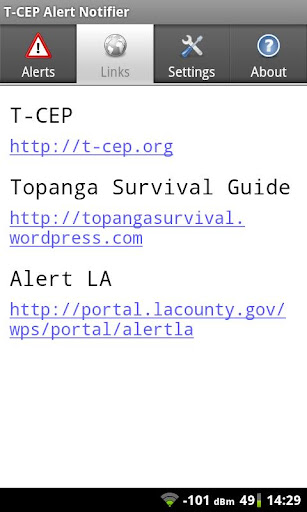 Displays alert updates from the Topanga Coalition for Emergency Preparedness (T-CEP.)