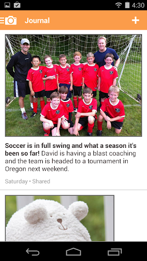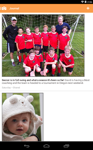 • Jot down a memory as it happens in your family journal. Add a photo from your gallery, or take a new one—all while you're on the go.