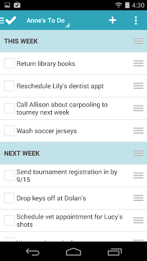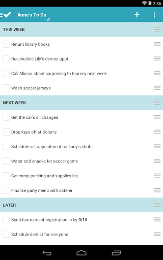 • Stay on top of the family's to do list. Add, edit, and cross off items as you do them from your phone, tablet, PC or Mac.