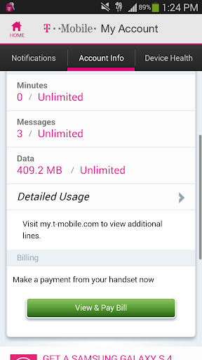 • Notifications - the one place to find alerts for your device, account, and any special offers from T-Mobile