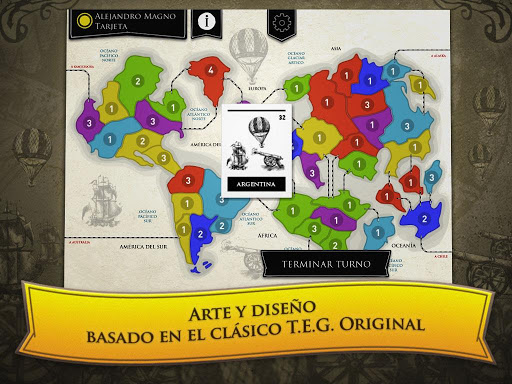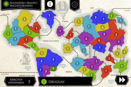 NOTA PARA LOS EXPERTOS: Para los que desean un desafío aún mayor jugando contra la Inteligencia Artificial, les sugerimos que jueguen en el 6to lugar, ocupando los primeros 5 lugares con la IA. Como esta versión móvil está basada en las reglas del T.E.G. Original, tienden a favorecer quienes jueguen primero, así que con este cambio en el orden de jugada verán como la dificultad de la partida se ve incrementada (especialmente jugando por Objetivos Secretos).