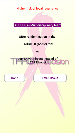 This app can help make decisions about breast cancer IORT treatment, using the TARGeted Intraoperative radioTherapy (TARGIT).