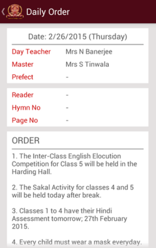 • Ability to receive notifications for the messages sent by the school