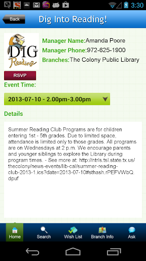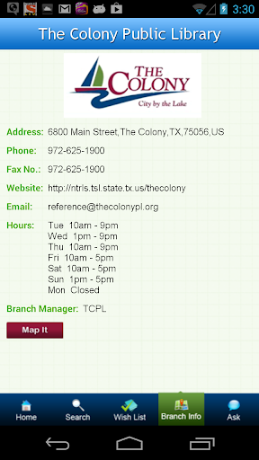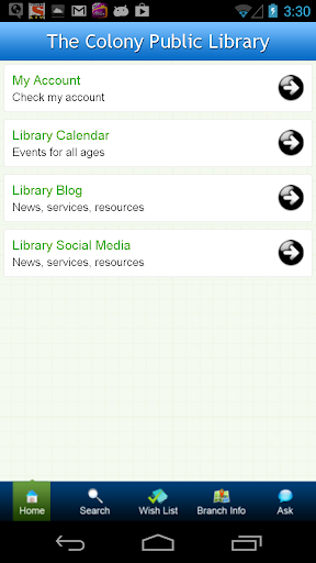 TCPL Mobile from The Colony Public Library lets you easily find titles in the Library, manage your account and get the information you need, including:
