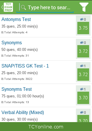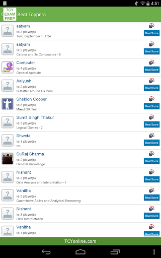 Invite & compete real time with your friends, other online users, TCY Avatars and previous toppers as well. Compare your accuracy, speed and preparation with your opponents in a real time environment.