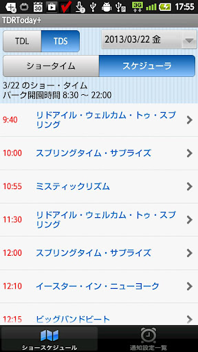 リマインド機能によりショー開始の60分、30分、15分、5分前と開始時刻にアラーム