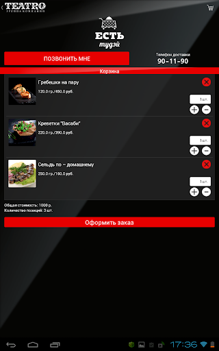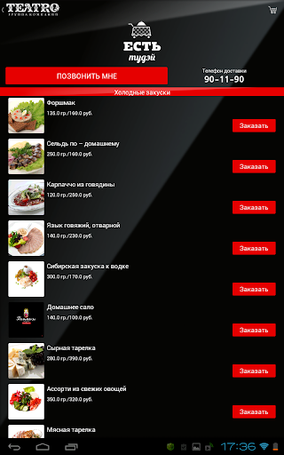 «Есть тудэй» - доставка еды из всех ресторанов ГК «Театро». ( «Пельмени project», «Малина бар», Чайхана "АйДаБаран") Возможность индивидуально подобрать кухню, выбрать вкусные блюда, а также заказать коктейли и кальян на дом!