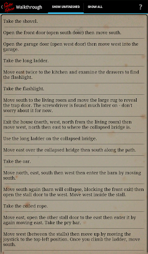 When these classic style adventure games were at their peak, the player was responsible for making notes as they played so as to not get lost. With this game, a simulated hand-drawn map is available of all previously explored areas. Commands at one time had to be typed as well! That is no longer necessary as all commands can be entered using the provided buttons. Of course, for those who miss that nostalgic ‘Text Adventure Game’ experience, feel free to type the commands if you want. A joystick is also included to allow for quick navigation and also gives the ability to quickly ‘look around’. And if you get stuck, hints are readily available to help you get on your way again.