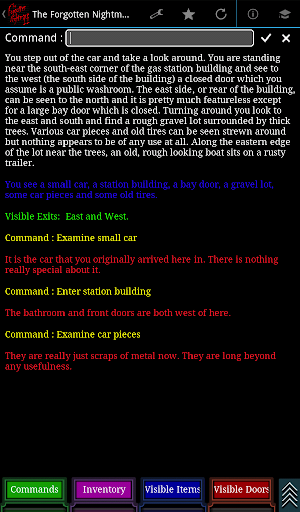 “The Forgotten Nightmare II: A New Reality” is the second chapter in a series of all text (Interactive Fiction) adventure games. Going against modern game evolution, the only graphics you will have is a map. It is a playable story which uses your imagination to paint the pictures. It is not simply a multiple choice game but has the ability to accept full commands with seemingly endless and often comical responses.