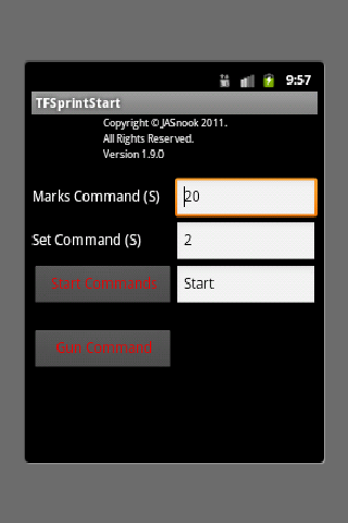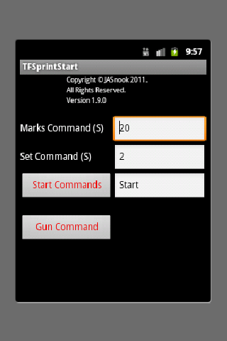 TFSprintStart application is applicable to Track and Field. It provides simulation of start commands primarily for sprint races. Audible and Visual indications are provided for each start command.