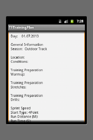 Each Training Session is partially initialized with representative data. Training Session data can then be added or edited after the athlete completes each Training Session.