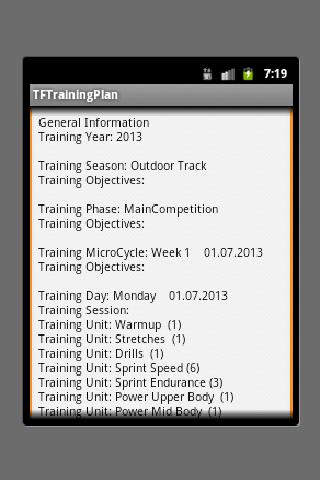 TFTrainingPlan application provides creation of individual Training Plans. Training Sessions associated with a specific Training plan can then be created from generated data using Create Sessions Menu.