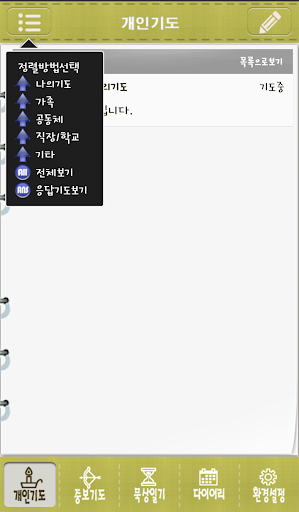 2. 개인기도를 분류별로 기록하고 기도응답처리기능.
