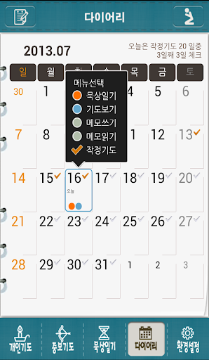 6. 작정기도 스케쥴을 만들고 달력으로 작정기도일정관리.