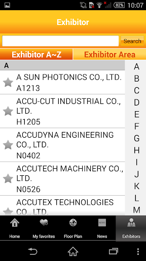 1. Exhibitors: Search exhibitors by keywords or exhibitor area. Click “Floor Plan” icon to see show map
