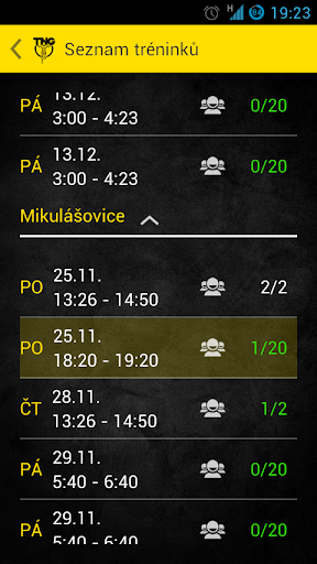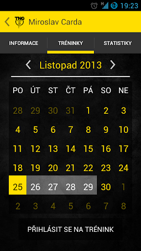 Aplikace slouží pro zobrazení informací o TNG, přihlašování na tréninky a zobrazení statistik a informací uživatele.