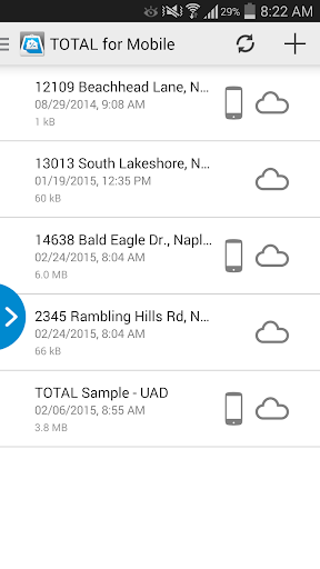 Starting, editing, and sharing your reports between your Android device and desktop is easier than ever before. Whether you start your appraisal reports in TOTAL or from your Android device, the new design gives you instant access to your files from the cloud. And, the updated syncing process makes it easy to choose which files to send on your schedule, instead of sending everything at once.