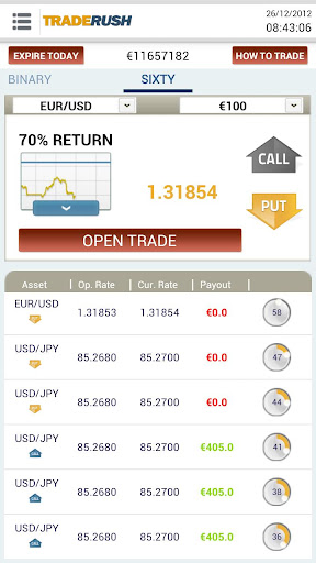 Our binary options trading application enables you to stay connected with the global market and never miss a trading opportunity. TradeRush's mobile trading platform puts the market at your fingertips. It’s the most effective and simple way to earn money, anywhere, anytime. Experience the power of mobile trading today!